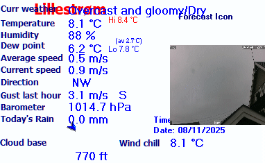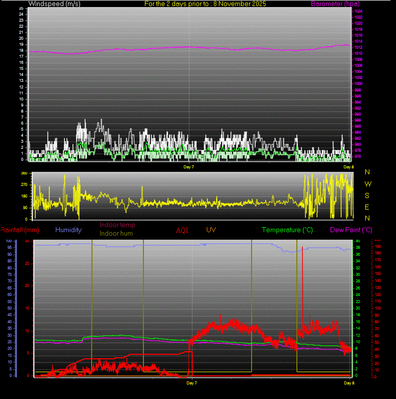 | Maximum Temperature (since midnight) | 8.4°C at: 00:00 | Minimum Temperature (since midnight) | 7.8°C at: 08:24 |