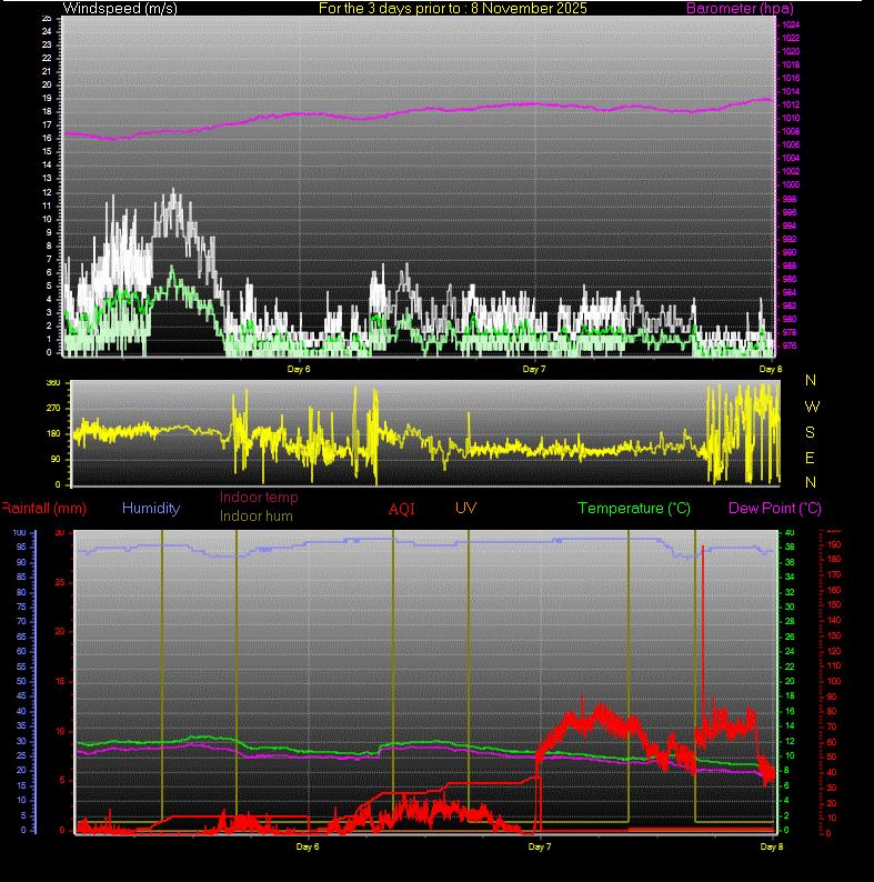 | Humidity | 88 %, Humidex 8.0°C | Barometer corrected to msl | 1014.8 hPa |