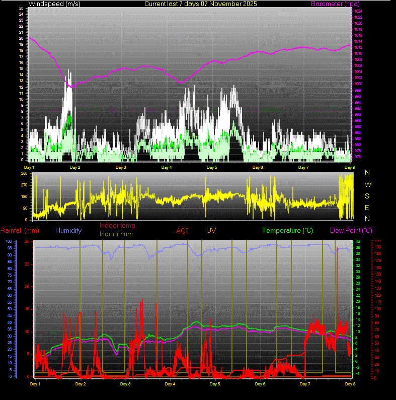 Record high wind gust : 32.7 m/s from 265o at: 23:00 on: 07 Jan 2023